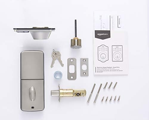 Home Electronics Amazon Basics Traditional Electronic Keypad Deadbolt Door Lock with Touch-Control Keyless Entry, Keyed Entry Option, Satin Nickel