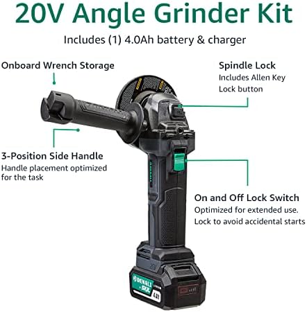 Amazon Brand – Denali by SKIL 20V Cordless Angle Grinder Kit with 4.0Ah Lithium Battery and 2.4A Charger, Blue