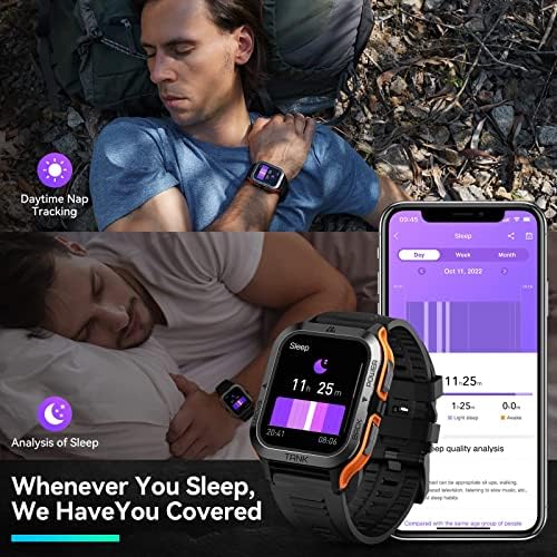 ⌚50M Waterproof /Extremely resistant to damage – Incredibly strong and corrosion-resistant titanium case has been used to enclose and giving cover, the rugged military grade smart watch with fully enclosed ultra-thin case design can be easily submerged into 50M (IP69K waterproof) deep water. Our durable smartwatch has withstood the extreme conditions and passed drilling, crushing and hot steam washout tests, making our sports watch suitable to use under high temperature and pressure.