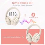Up to 110 Hours Playtime: The Bluetooth headphones delivers up to 110 hours continuous playtime on a single charge in wireless mode, charging 10 minutes working 5 hours, you can use it for all day work or long trip. The headphones comes with a 3.5mm audio cable, allow you to switch the headphones to connect other non-bluetooth device in wired mode, enjoy your music non-stop.
