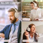 All Day Comfort: The earcups of the headphones has ultra soft protein leather with memory foam cushion, it can fully encompass your whole ear softly & securely without causing discomfort or ear fatigue, ensure your personalized lasting comfort. The ergonomic adjustable headband is suitable for every different head shape & size, the headband has thick and comfortable padding, you can adjust the headband to find the best wearing position.