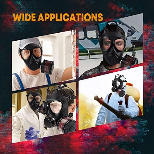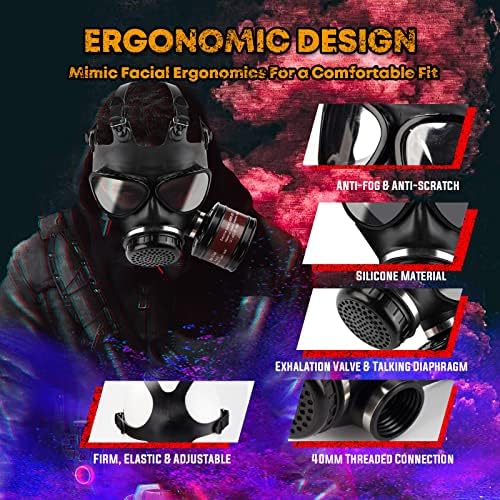 【Professional Design】The gas masks survival nuclear and chemical is made of high-quality silicone material, comfortable and safe. Our gas mask is designed to mimic facial ergonomics for a comfortable fit. Six-point headband design, firm, elastic and adjustable size, suitable for most people to wear.
