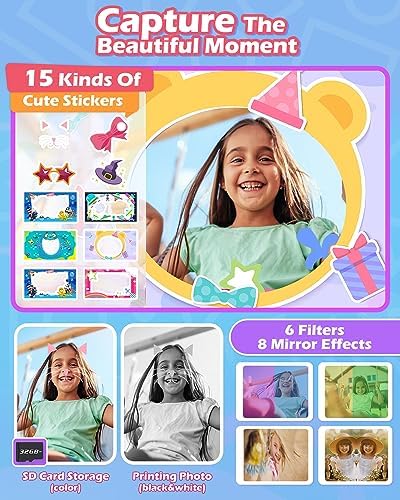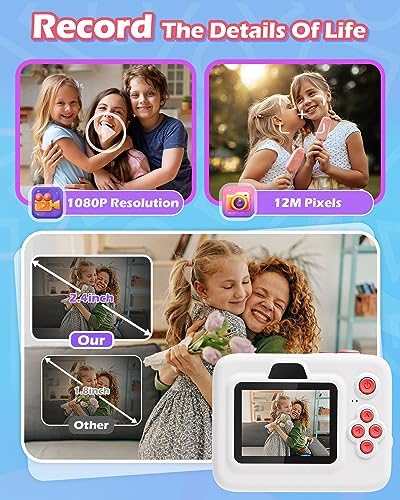 🎨HIGH QUALITY FUN TOY- The toy camera offers a combination of 12M pixels with 1080P resolution that records vibrant photos/video.Large 2.4″ preview screen which gives kids a wide field of view. Moreover, the print mode has 3 grayscale. Kids can customize parameters according to the environment and reproduce the real scene. The shoot mode has various stickers and filters, supports 16X digital zoom, time-lapse, and burst shooting, and captures memories in multiple ways.