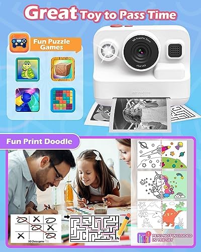 Anchioo Kids Camera Instant Print, 1080P Kids Digital Camera with Printer Paper, Christmas Birthday Gift for Girls Boys Age 3-12, Kids Print Camera Toy for 4 5 6 7 8 Year Old Boy, 32G SD Card - White