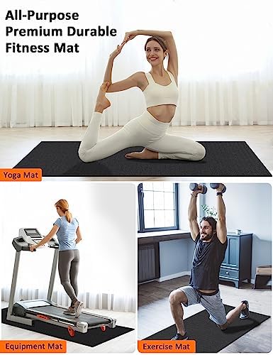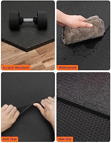 ✅ HEAVY DUTY ALL-PURPOSE FITNESS MAT: Instantly transforms any space into a professional gym, the floor mat is even shoe-friendly, whether cardio, yoga, weightlift, dance workout including P90x, MMA, TAM, insanity, T25, TRX, kettlebell, jumping rope or need rubber gym mats to install underneath a treadmill or weight bench. With the yoga carrying strap, you can carry it to any place, even if it is used as a carpet, it can play an excellent role. Great for home gym, garages coverage or play areas.