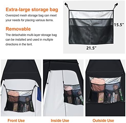 BUILT-IN DETAILS: This portable toilet tent is built with attention to detail. You’ll find our long clothesline, shower head lanyard, flashlight lanyard, extra-large storage bad, two mesh personal item storage pouch make this feel like your home bathroom. anngrowy Committed to offering your a reasonable, private, clean and accessible space for potty, changing clothes and shower restroom.