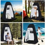 PORTABLE & SPACIOUS SHOWER TENT- At 6′ 4″ high and 3′ 11″ in length and width, this camping shower tent allows you to stand up and stretch out inside. With all that interior space, showering, changing, and using the bathroom is much more comfortable. The camping toilet tent weighs just 5.5 lbs, and the dress tent can be folded into a compact size of 22″ L x 22″W x 1.4″ H. Ultra-lightweight construction stand-up changing tent allows for easy transportation with an included carrying bag.