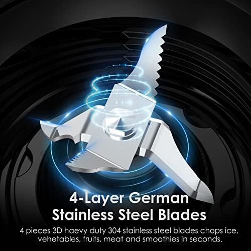 【4 Stainless Steel Blades】- With 4 pieces of stainless steel and exclusive dual direction blade technology, the blenders can break cell walls of food easily, releasing more nutrition in seconds, making it the perfect blender for shakes and smoothies.