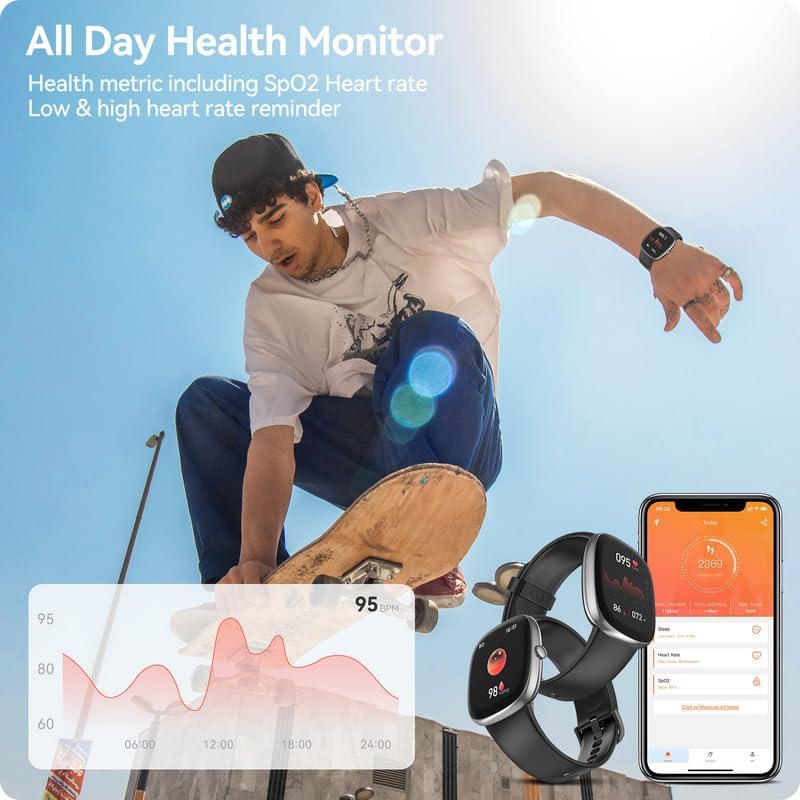 24/7 Heart Rate Monitor & Sleep Tracker: Activity trackers and smartwatches can monitor your blood oxygen levels, heart rate, and track your sleep patterns to gain valuable insights. The watch records deep sleep, light sleep, and awake duration. providing a comprehensive analysis of your sleep quality to help you stay active and healthy.