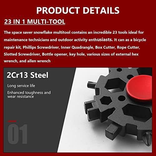 【23 IN 1 MULTI-TOOL】Compared with a messy toolbox, this snowflake multi-function tool combines 23 different tools into a compact device, which is lighter and more space-saving. Including Phillips screwdriver, wrench, flat-blade screwdriver, bottle opener, etc., you can use the cool gadget to open bottles, tighten screws and bolts, repair skis, bicycles and toys, or use it as Christmas tree decorations.