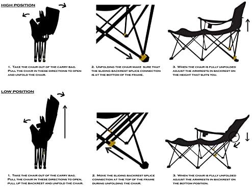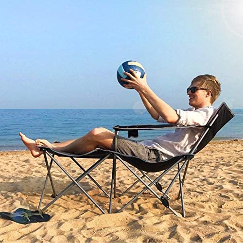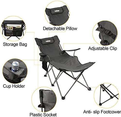 The adjustable reclining backrest design provides stable and comfortable support for the back and legs.This recliner chair can be used as a usual beach chair for adults or a reclining camp chair with foot rest by adjusting the pad position at the end of armrest.Relax your body,benefit for relieve cervical pain and relax muscles.(PS:Please refer to the video of grey version for setting the chair tilt)