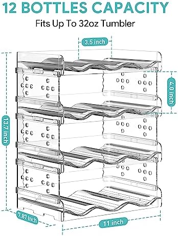 [Premium Quality] Made of quality shatterproof PET material, this water bottle organizer is sturdy and durable, with a strong load-bearing capacity. You can safely fill this bottle organizer with heavy water bottles. Easy to clean, DO NOT dishwasher wash.