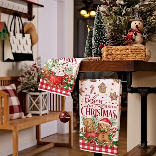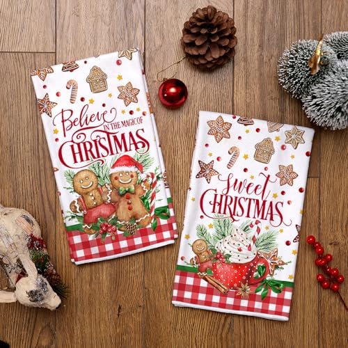 [Great Gifts]: Our xmas-themed dish towels are perfect to complement other fall decorations in your home. They also make a thoughtful and practical gift for a housewarming or hostess occasion, showing your appreciation for their hospitality while also adding a touch of christmas charm to their home.