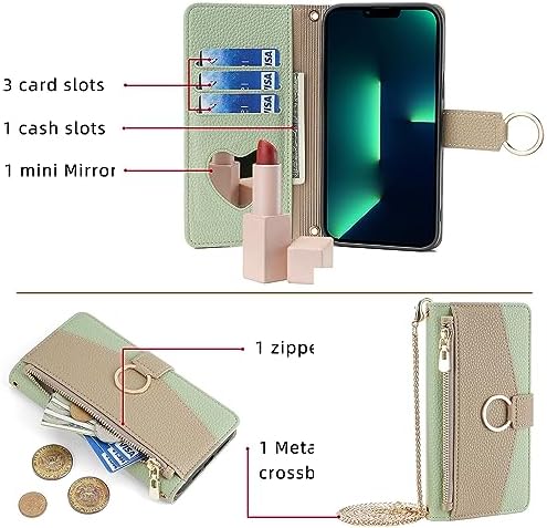 Home Electronics Smartphone Arseaiy Wallet Case for Oppo A38 4G/Oppo A18 4G Flip Phone Case Cover with Crossbody Strap Magnetic Zipper Pocket Makeup Mirror PU Leather Shockproof with Kickstand Shell Green