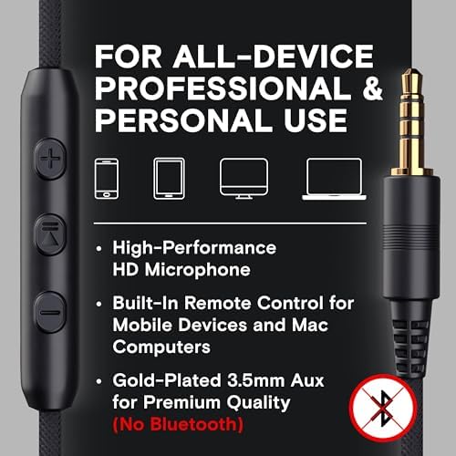 🎧 EASY TO USE – The wired headphones with wire are easy to use with a simple design and a 3.5mm jack that is compatible with most devices. The long cord provides a comfortable fit and allows you to move around freely without getting tangled. The built-in mic makes it easy to take hands-free calls, and the volume control is easy to reach. ⚠️ NOTE: the remote controller is compatible only with mobiles and Macbook computers!