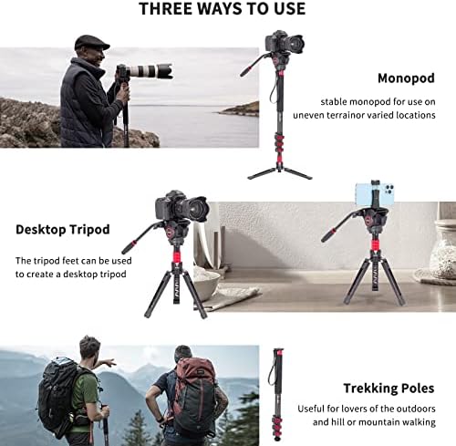 ☑Adjustable height: 27.55″ to 71.25″ | Tilt range: -50° to +90° | Pan range: 360° | Max Load: 13.2 lbs | 6-Year Warranty |Please don’t leave the monopod standing alone but always keep it with your hand