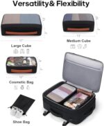 ✈【3 PACKING CUBES + 1 SHOE POCKET】Large cube for sweaters, jackets, and pants. Medium cube for shirts, and shorts. Small cube with a transparent side for providing a clear overview of toiletries. There’s also a shoe pocket. Keeping your belongings neater and more organized. The laptop backpack has a built-in USB port to charge your phone conveniently via connecting your own power bank (not including a USB charger).
