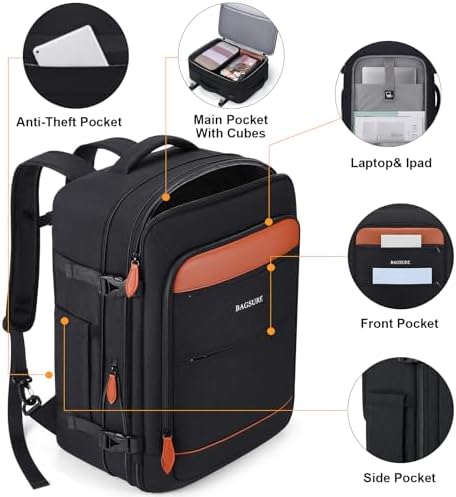✈【FLIGHT APPROVED CARRY ON BACKPACK】This laptop backpack for men is designed for travel, you can travel anywhere you want, and two padded handles for easy switching between backpack and suitcase. There is a luggage strap on the back, which can be placed on the luggage. It fits overhead and under the seat, while in a state of standard carry-on size, and is ideal for men, women, weekend travelers, or occasional vacationers.