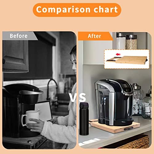 PREMIUM MATERIAL: This appliance slider tray is made of sustainable bamboo boards, rails, and pulleys, which is durable and has a strong load-bearing capacity, which can easily move and carry heavy equipment up to 30 lbs.The slider tray will not damage appliances and kitchen countertops during use;