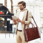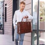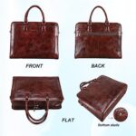 Portable Briefcase for Men: Double leather handles are built with sturdy fill and ergonomic 5.25″ drop height for comfortable carrying; Detachable and adjustable shoulder strap is made of strong canvas, with 11″ to 22″ length adjustments. It has a leather shoulder pad to relieve your shoulder.