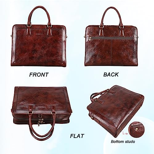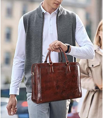 Leather Briefcase for Men: Made of full grain vegetable tanned leather imported from Italy, rust-proof zinc alloy hardware and durable cotton poly twill lining, it has gradient leather craft and wear-resistant edge paint to create a vintage leather look.