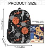 【Fashionable design】The basketball backpack design size is 17.3 x 11.4 x 5 inches (L x W x H), weight is 0.66lb, which is suitable for various groups of people. This durable backpack is designed to be portable and with two adjustable shoulder strap, the elastic mesh side pocket fits a water bottle and a umbrella nicely.