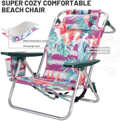 Cozy design: the angles of the beach chair back and armrests are meticulously designed to perfectly align with ergonomic principles, allowing you to experience complete ease and relaxation. Also equipped with head rest pillow, our bach chair provides all-day comfort for your head and neck.