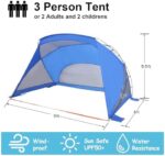 3/4 Person Beach Tent Sun Shelter Beach Shade Tent with UPF 50+ Protection