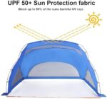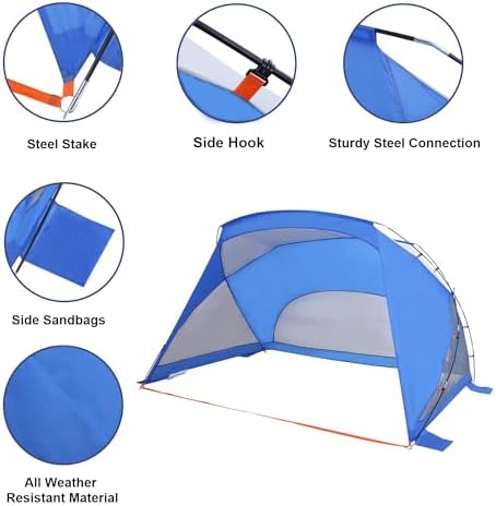 GREAT VENTILATION DESIGN: 3 large mess windows for air ventilation is so cool, you can enjoy the breeze wind in hot summer. This beach canopy tent has a wide open front that allows for easy access and good sight.
