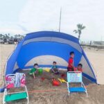 This portable beach tent sun shelter canopy is only 5.4 pounds, it also comes with a handy carry-bag.