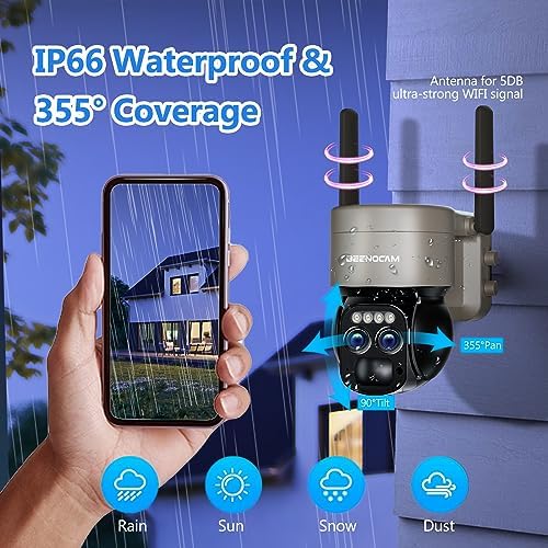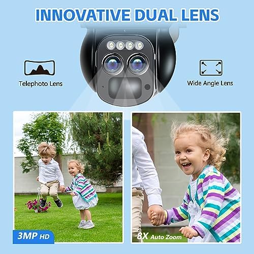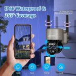 【8X Zoom Security Camera & 360°Coverage】8X Digital zoom-in for you see clearer details with enlarged image. The PTZ outdoor security cameras wireless outdoor wifi supports horizontal 355°and vertical 90°pan-tilt rotation auto tracking, providing you with 360°all-round protection almost no blind spots. You can also manually rotate the wifi camera to see different directions and monitor any corner remotely via the APP, protecting your property and family!