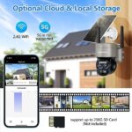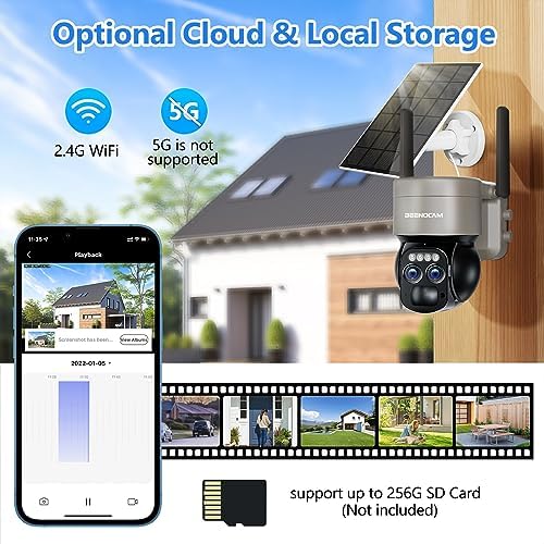 【Solar Powered & 100% Wire-Free & 5dbi Dual Antennas】BEENOCAM cameras for home security outside built with solar panel and 15000mAh rechargeable battery, providing 365 days non-stop power supply. 100% wireless, no circuit wiring hassles or external Installation fee, set up solar camera freely anywhere, like a shop, home, garage, yard,hotel, outdoor. Upgraded 5dBi dual antenna ensure more stable and stronger wifi. Real-time videos are smoother, clearer. Only supports 2.4Ghz WiFi not 5GHz.
