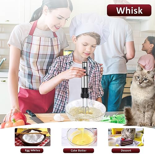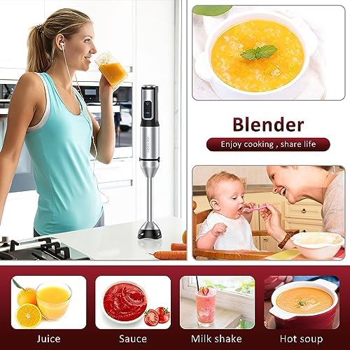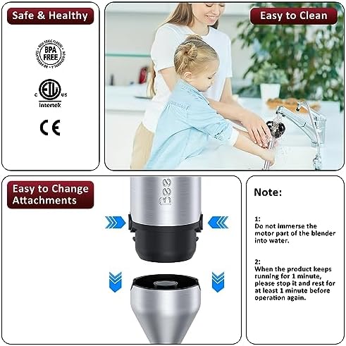 Multi-Functional: this blending set is the ultimate kitchen assistant for effortless blending, chopping, and whisking. The handheld immersion blender comes with a convenient twist-and-lock chopper featuring a removable blade, as well as a pair of egg whisks. all materials in contact with food are made from BPA-free, food-grade components for your peace of mind.