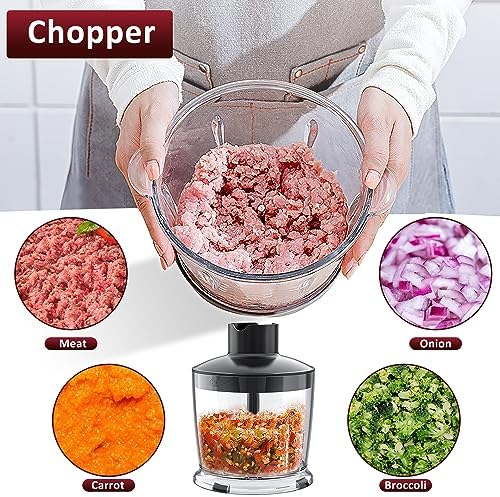 BEEWEEL Immersion Blender Handheld - 800 Watts Scratch Resistant Hand Blender, 15 Variable Speeds & Turbo Hand Mixer, 3-in-1 Heavy Duty Copper Motor Handheld Blender with Egg Whisk and Chopper