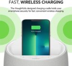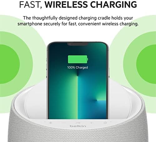 FAST WIRLESS CHARGING: The SoundForm Elite features integrated fast wireless charging for iPhone at 7.5W, Samsung at 9W, and Google at 10W. Vibration-canceling technology in the speaker ensures your device charges steadily without interruption.