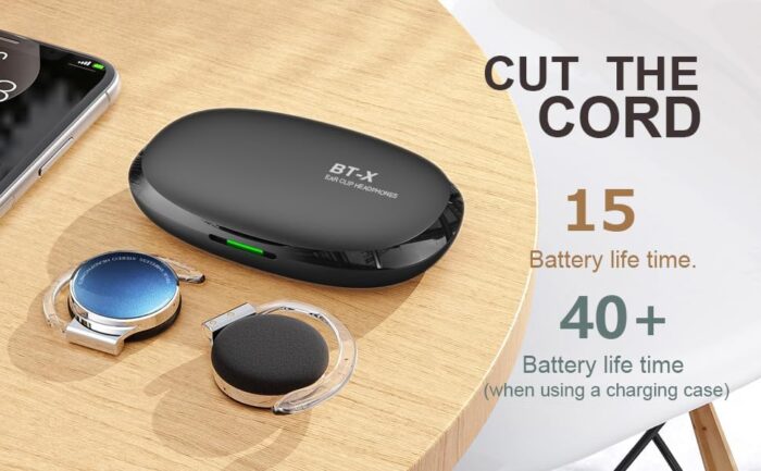 🎶【15 Hours Long Battery Life】Clip on open earbuds allows you to listen to songs without worrying about power, it can play music continuously for 15 hours after a single full charge. It is lightweight, comfortable to wear, fast charging, only takes about 2 hours to fully charge, and has a standby time of up to 90 days. Not only do these headphones have a long battery life, but they also have a convenient charging method that allows you to enjoy your music without any hassle.