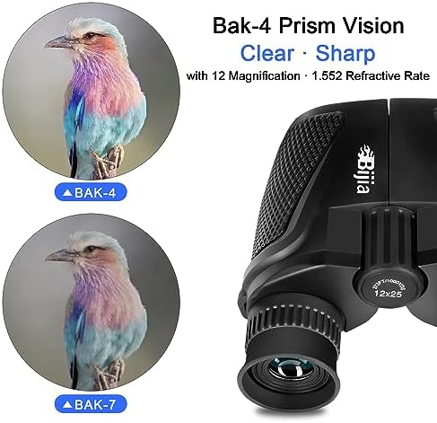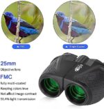 【Large field of view, high magnification, compact binoculars】It has a true 12x magnification, a 25mm green film lens, a field of view of 91m/1000m and an eyepiece of 18mm, allowing you to easily observe the observation targets and details at 1000m distance.