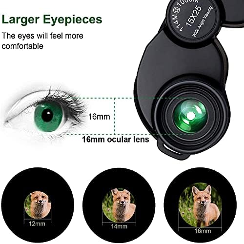 15×25 Binoculars,Portable compact and small binoculars design,Small size handheld and portable binoculars design,One hand can be mastered when you use the binoculars for opera,bird watching, traveling,wildlife watching,football games,cruise or other outside activity. And also comes with a portable bag and a neck strap in the package , the low light night vision goggles is more convenient for using and carrying. It is wonderful to be a gift on Father’s Day and Children’s Day.