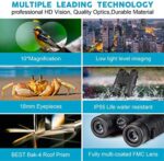 Easy to Focus With or Without Glasses – A central focus wheel and right eyepiece ring let’s you easily adjust different view distance while maintaining high definition vision. Rubber eyepieces are also designed to twist up/down for viewers who wear glasses.