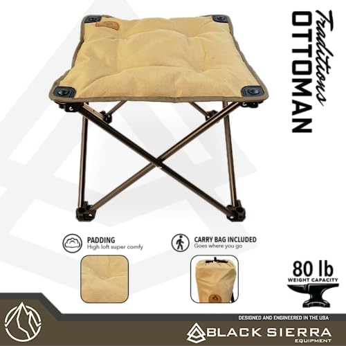 COMFORTABLE DESIGN: This padded ottoman offers all day comfort and is designed to work with all Black Sierra camping chairs and sofas.