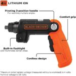 INCLUDES – (1) BDCSFL20C 4V MAX* cordless rechargeable screwdriver, (2) screwdriving bits, (1) charger.