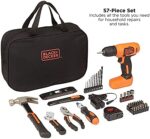 Included Components: (1) 8V MAX* Lithium Ion Drill, (1) Tool Bag, (1) Claw Hammer, (1) Tape Measure, (1) Adjustable Wrench, (1) Slip Joint Pliers, (1) Ratcheting Screwdriver, (1) Utility Knife, (4) Nut Drivers, (32) Screwdriving Bits, (1) Level, (1) Drilling Bits, (1) Magnetic Bit Holder