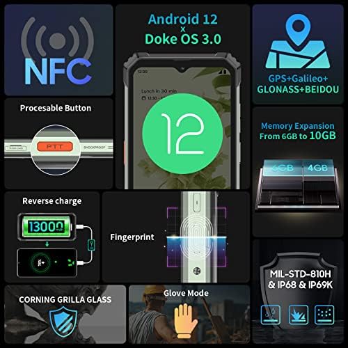【Various Functions and Convenient Design】This rugged unlocked smartphone designed with NFC for smart life, Fingerprint sensor & Face ID for easier and faster unlocking, Glove Mode for seamless touchscreen operation,Customized Function Button for quick access to 7 essential functions and your favorite apps, GPS & GLONASS & Beidou & Galileo for accurate position, Convenient Lanyard Hook for secure carrying, Dual Card Slots for versatile connectivity and Useful Toolkit including gyroscope, magnetic sensor, FM radio, and more for improved assistance in both life and work.