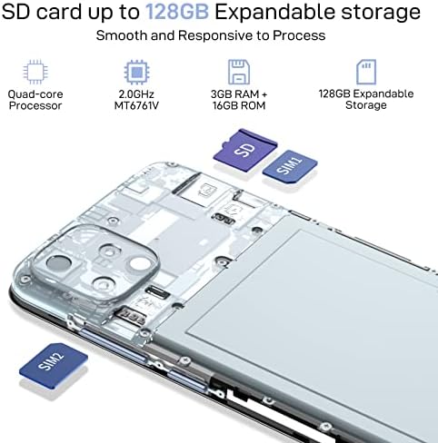 💎【2+1 Card Slots Design/SD 128GB Expandable & 2.0GHz Unlocked Cell Phone】Blackview A55 phone with 3 cards slot design, you can use of two Nano SIM cards and 1 SD card at the same time. 3GB RAM and 16GB ROM, as well as a 2.0GHz low-power processor, the Micro SD memory card can expand to 128GB storage, you can download more movies or pictures, and runs more apps, etc. (Note: Please restart your phone after putting an SD card, then it will show in your phone.)