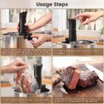 【Quiet and safe Operation】Enjoy a serene cooking environment with our ultra-quiet sous vide cooker. Operating at less than 15 dB noise level at a distance of 1 meter, it lets you focus on the joy of cooking without any distractions. Low Water Level Protection and Temperature Alarm to prevent dry burning and ensure a secure cooking experience