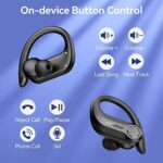 【Comfortable for Sports & IPX7 Waterproof】Due to the flexible and soft ear hooks, these Bluetooth sports headphones stay in place very well and stay comfortable for extended periods of time when playing sports, you don’t need worry about them falling off or hurt. And it comes with 3 different sized ear caps for different ear sizes. IPX7 waterproof can effectively prevent water splash and sweat, which makes them more suited for exercise/gym/fitness/workout/running.