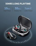 🔋【120H Playback and LED Digital Display】Single wireless earbuds can be use 18Hrs, up to 120Hrs of listening time with 9 additional charges from 950mAh battery capacity charging case. Charging case with a clear digital display, as well as the left and right sides with the earbuds power display, each grid represents 25% of the power. During charging and connected, the LED light will flash.