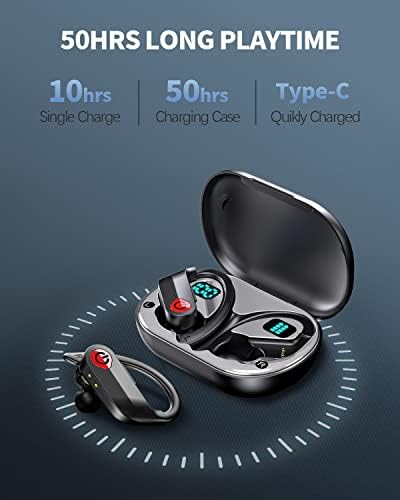 Bluetooth Headphones Wireless Earbuds Sports Over-Ear Bluetooth 5.3 Ear Buds with Earhooks 120H Playtime Wireless Headphones for Workout Waterproof Audifonos Bluetooth inalambricos LED Power Display