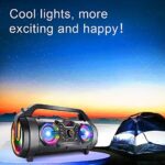 【Wireless Party Speaker】-【Colorful lights and EQ Sound Effects】 Bluetooth speakers with colorful lights can give your party an exciting atmosphere, suitable for home, gym, yard, camping, swimming pool, beach. There is a microphone inlet on the speaker. If you have a microphone, you can also sing your favorite songs.The speaker has EQ sound effects,such as jazz music effect, rock music effect, classical music effect, pop sound effect and more.