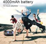 【Portable Bluetooth Speakers】-【Comfortable Carry and Long Time Play】 The A66 Bluetooth speaker has a built-in 4000 mAh rechargeable lithium battery, which can continuously play for 10 hours when fully charged. Enjoy music in your home, backyard, and party. Comfortable handles and removable shoulder strap, you can take the speaker anywhere.